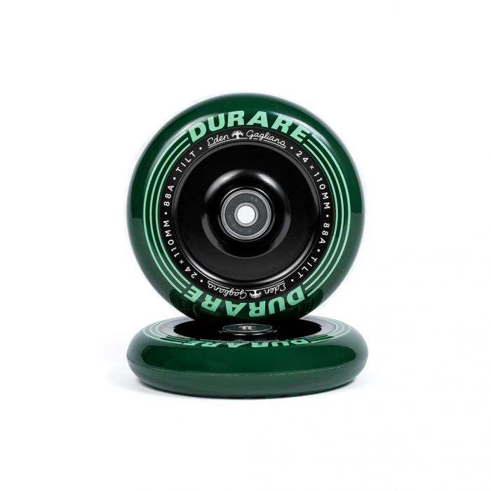 Tai Eden Gagliano Signature pro paspirtuko ratų rinkinys iš prekės ženklo Tilt. Turėdamas stipininę šerdį, pagamintą iš aliuminio, ratas atrodo klasikinis ir pasižymi visomis tinkamomis savybėmis, tokiomis kaip mažas svoris ir ilgaamžiškumas. 88A patvirtina puikų rato sukibimo ir greičio derinį, todėl jis puikiai tinka važiuojant gatvėmis ir parke. Tilt suprojektavo ratą su apvaliu profiliu, kad suteiktų jums stabilų ratą su mažesne trintimi ir taip gererintų jūsų važiavimą.